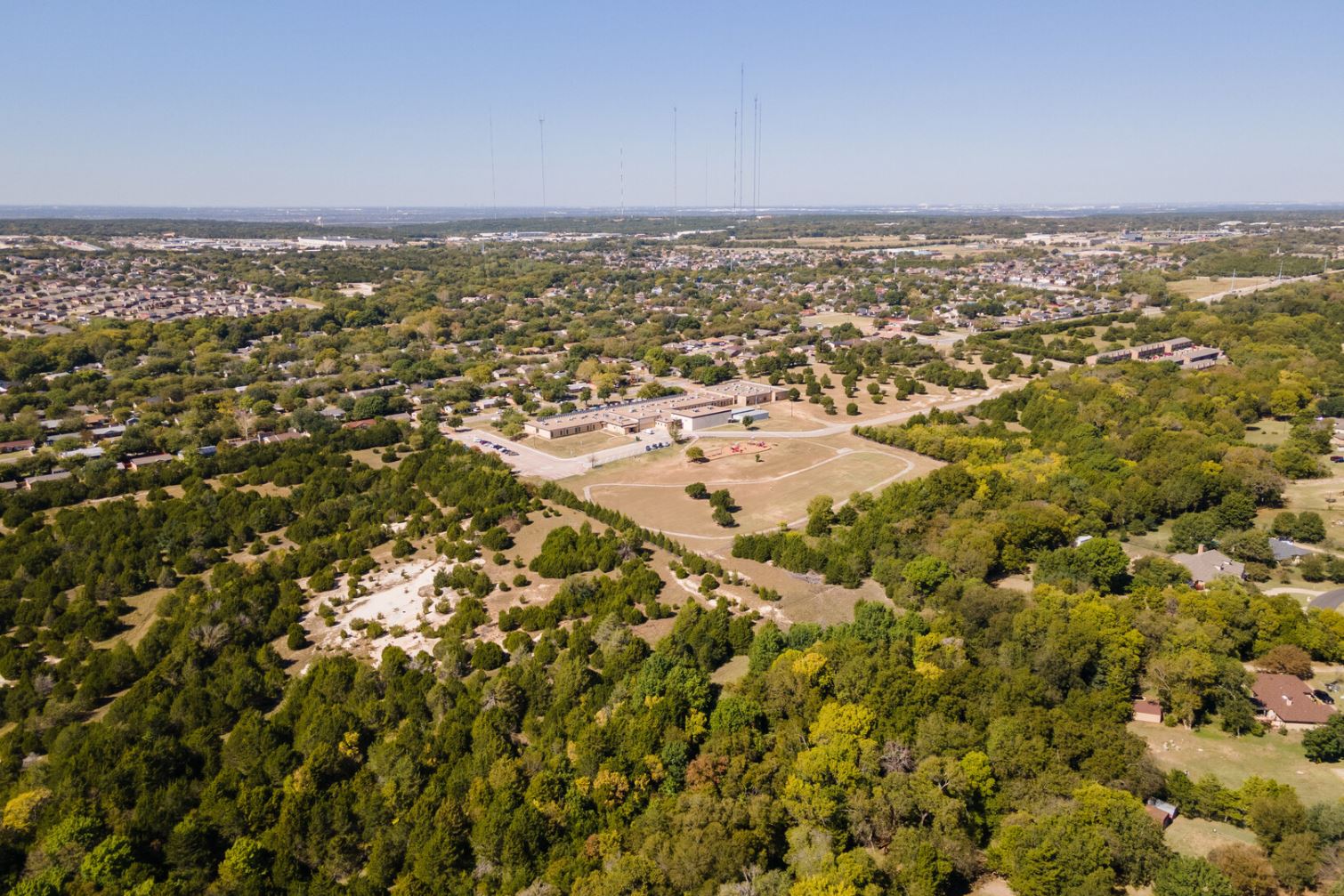 Horse stables & a large park with a walking trail are across the street on S Clark, Plummer Elementary adjacent to the north, with the Cedar Hill Fire Station at the corner. Current permitted by right usages include but are not limited to private country club, golf course, non-commercial radio tower & a church.
