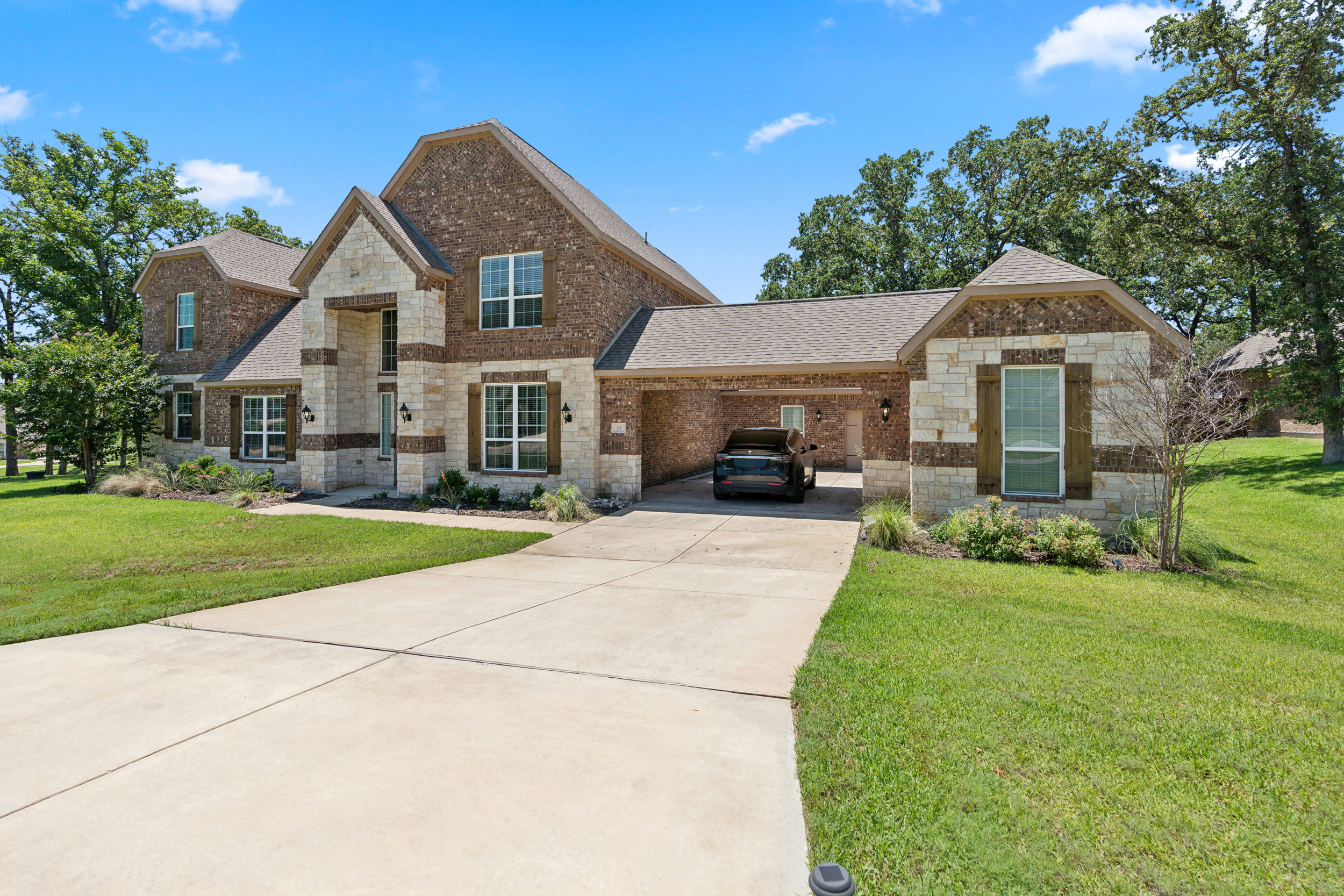 VA Assumable note at 4.5%! Small-town charm with the conveniences of city living is what you get when you move to The Woodlands of Krugerville. And this 2-story stunner in particular has been meticulously maintained by one owner since it was built in 2017. It offers nearly 4,000 square feet of like-new living space on a spacious half-acre lot, with the rare opportunity for a veteran to assume the owner’s 4.5% mortgage interest rate; a real game-changer in today’s market. From the moment you pull up, the home welcomes you with Texas-sized curb appeal, a porte-cochère, & three garage spaces for all your trucks, toys, or tools. Step inside & you’re greeted with soaring ceilings, a home office, & a formal dining room perfect for Sunday dinners & holiday gatherings. Toward the back of the home, the living room, kitchen, & breakfast area create a warm, open-concept space that’s perfect for everyday life & entertaining. The kitchen is well-appointed & flows right out to a big covered patio complete with a built-in grill, sink, & counter space, perfect for backyard BBQs, parties, or a quiet night under the stars. The primary suite is tucked away on the main floor, offering privacy & space to unwind, while upstairs you’ll find three large bedrooms, a media room, & a cozy little office nook or homework station. The backyard is full of potential with plenty of room for a pool, garden, firepit, or workshop, & lots of shade offered by beautiful, mature trees. Living in Krugerville means you get the best of both worlds: peace & quiet, with quick access to US-377 and US-380, making it easy to get to Denton, Frisco, or McKinney. You’re just down the road from Woodland Park, & a short drive from Lewisville Lake & Lake Ray Roberts for fishing, boating, or camping weekends. Plus, you’re in the Aubrey ISD, known for its strong schools & community values. With space to breathe, room to grow, & a rare assumable VA loan, this home is more than move-in ready — it’s ready to be yours.