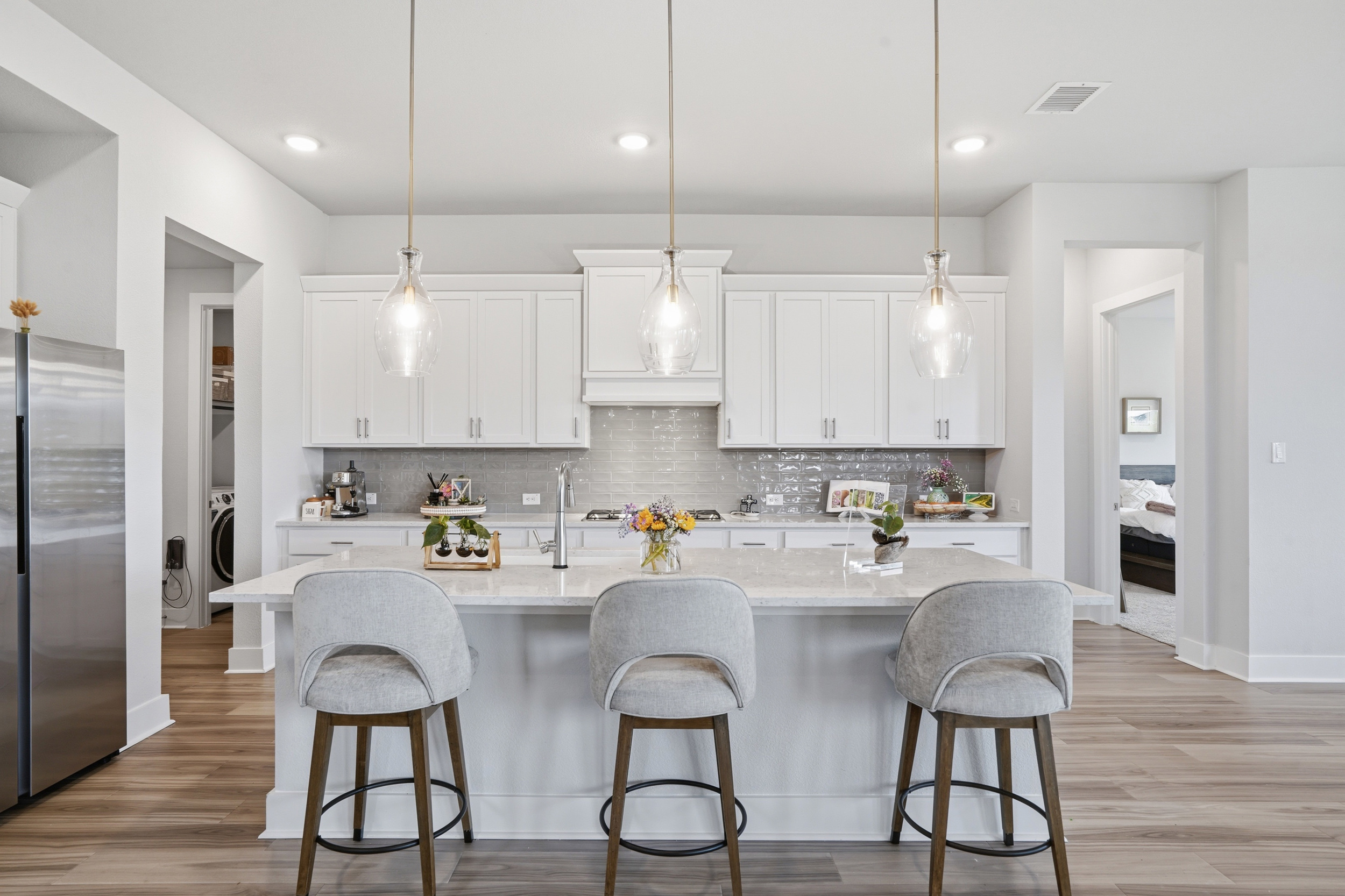 The site itself is situated on a premier lot buffered by a lush greenbelt both in the front and back. This “greenbelt-to-greenbelt” location ensures a sense of tranquility and wide-open views that are nearly impossible to find in standard subdivisions. The interior is equally impressive, headlined by a primary suite designed for ultimate organization and comfort. It features two expansive walk-in closets, offering a level of storage and separation that truly elevates the daily routine. While others in the community are navigating construction delays and rising material costs, you can simply turn the key and begin your next chapter immediately. All original builder warranties are still in full effect and are completely transferable to the new owner, providing the ultimate safety net for your investment. Just a few houses up the street, the sparkling community pool and amenity center are within easy walking distance, making it simple to enjoy a resort-style afternoon at a moment’s notice.